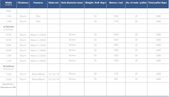 Microperforated and / or Macroperforated – Ideal for various types of crops, such as lettuce, tomato or melon.